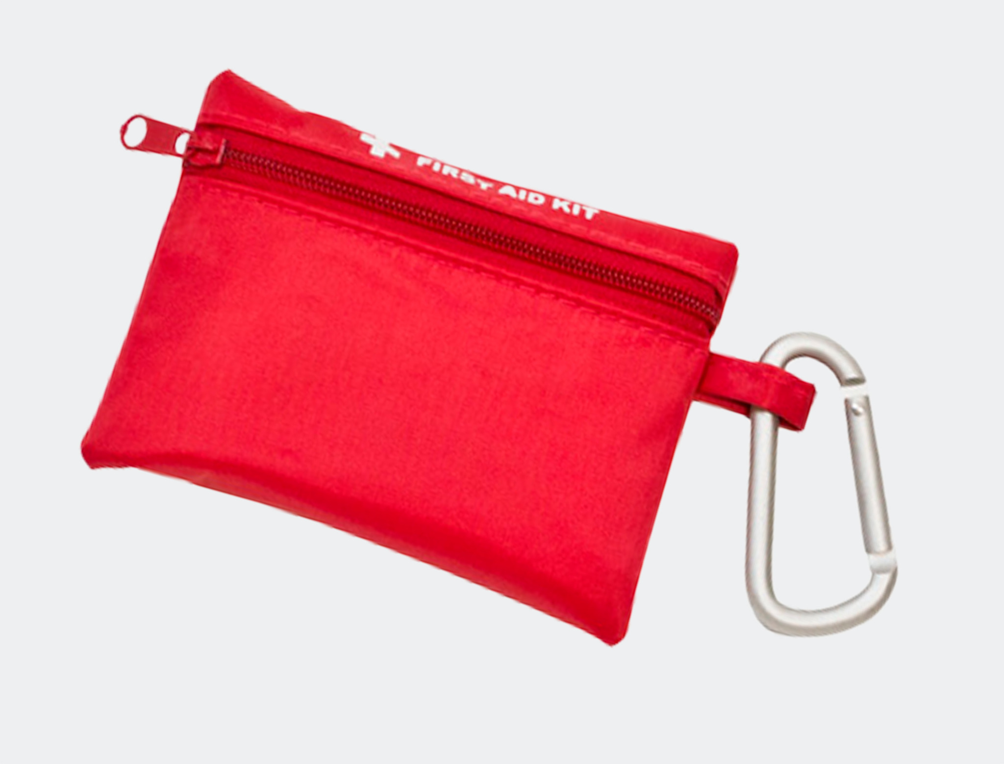 Liten førstehjelpsmappe med karabinkrok. Inneholder 23 plaster i ulike størrelser, samt diverse rensepads. Dimensjoner: 10,5 x 8 cm.